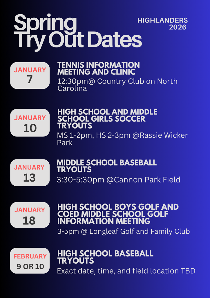 Please use the following links to register for Spring tryouts: